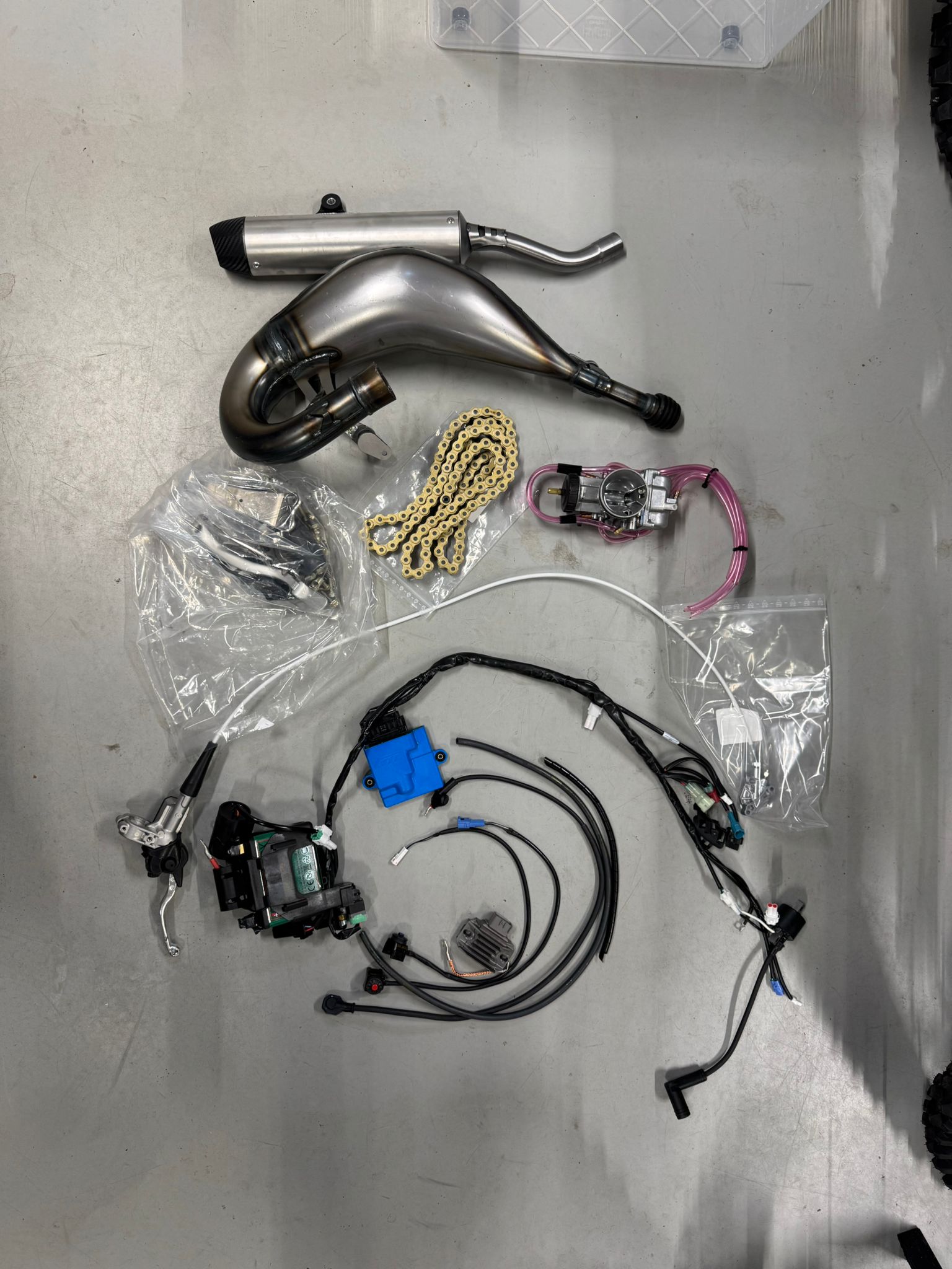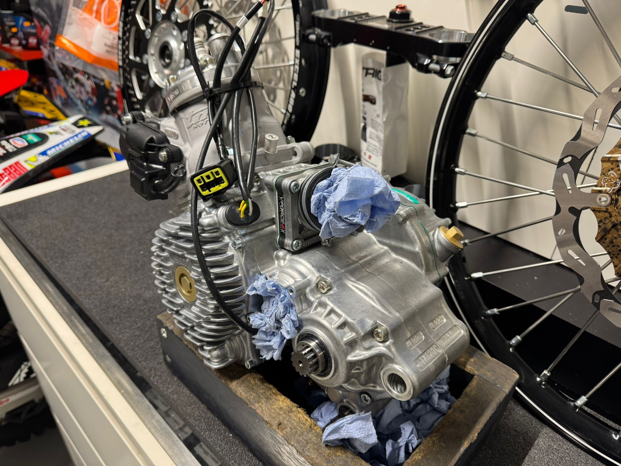 nieuw TM 125 MX blok model 2026 inclusief aanbouwdelen bevat: – blok – carburateur – accu – cdi kast – uitlaat systeem prijs is 3300 excl. BTW